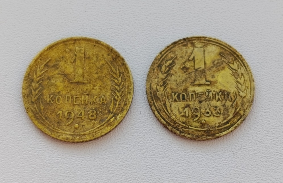 Видно, что 1 копейка 1933 года изрядно пострадала еще при жизни, а вот копейка 1948 года вполне годная. Ее я уберу в свой "фонд".