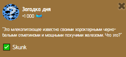Сегодня 26 января в 19:00 по мск, вышла новая загадка в игре Zoo. Ответ на ребус дня будет актуален до 18:59 по мск 26 января. Это млекопитающее известно своими характерными черно-белыми отметинами и мощными пахучими железами. Что это?