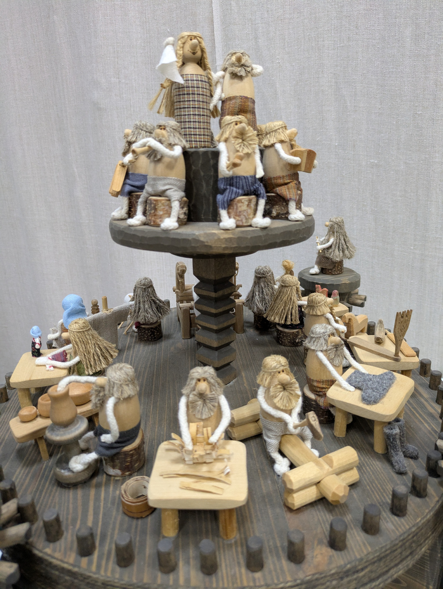 Сейчас будет заметка для любителей искусства. В мастерской имени Пантелеева в Вологде, подразделении Областной картинной галереи, мне очень понравилось, и вот почему. Мне очень хотелось на одну выставку, и мы туда пошли. И взяли с собой годовалого человека. Мы вытряхнули годовалого человека из комбеза и пустили топотушить. Человеку сразу стали улыбаться и даже дали для него собственный билет, хотя годовасам билет покупать не надо. На выставке Алексея Безобразова были деревянные фигурки, автор вдохновлялся промыслами Русского Севера. Так вот, всё, что можно было покрутить, для ребёнка покрутили, всё показали, ласково поговорили, пошутили. Не могла не отметить, как хорошо отнеслись к годовалому человеку в недетском месте. Ведь действительно же, люди не обязаны были как-то развлекать нашу крошку-картошку и демонстрировать теплоту, но сделали всё, чтобы маленький человек чувствовал себя комфортно, и ему было интересно. Спасибо. И да, пусть там всего два небольших зала, но выставка была