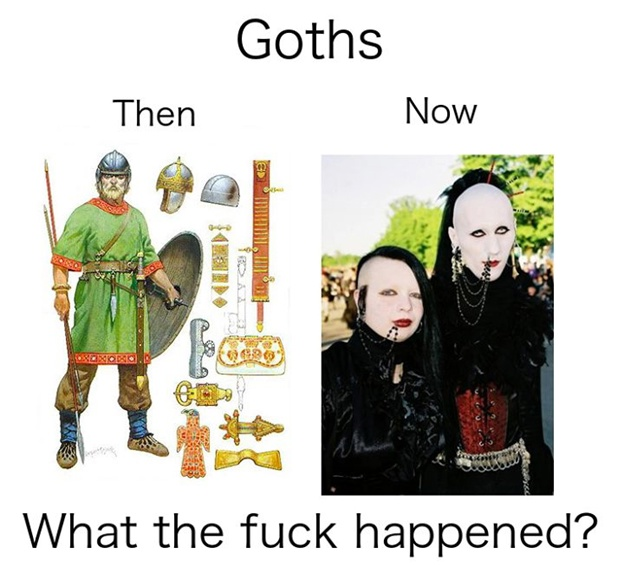 Статья под названием «5 видов Готов». Небольшой спойлер для тех, кто не будет читать – «Вампирские Готы», «Нацистские Готы», «Сатанистские Готы», «Преступные Готы» и «Готы жертвы».