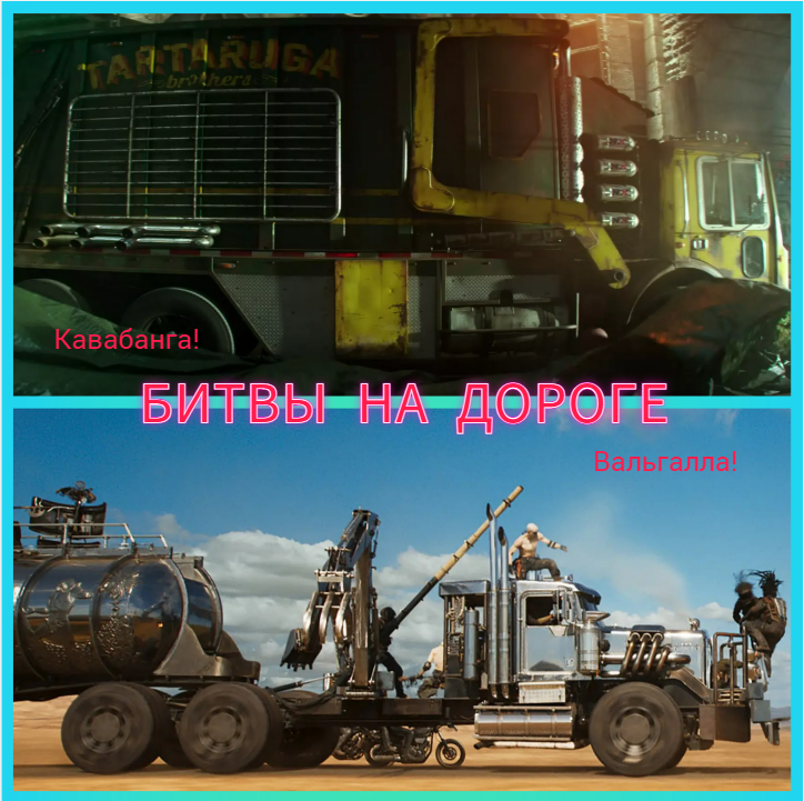 Сравнения носит развлекательный и приблизительный характер. Учесть все ситуации не получится, но постараемся прийти к конкретному выводу. Оставим пока "маленькие машинки", перейдём к более массивным и крупным машинам. Сегодня грузовик братьев-черепах будет противостоять Фуре из фильма 2024 года. Посмотрим, кто из них станет металлоломом.