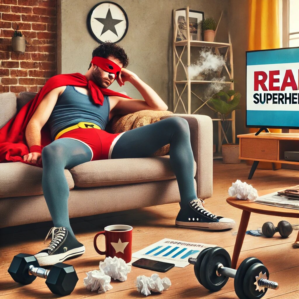 Вы когда-нибудь задумывались о том, чтобы стать супергероем? Я вот однажды решил попробовать. Думаю, что там сложного? Надел плащ, маску — и вперёд, спасать мир! Но реальность оказалась немного... другой. Первым делом я решил придумать себе супергеройское имя. «Молниеносный Чел»? Звучит круто, но бегаю я так себе. «Невидимый Мститель»? Тоже не подходит — с моим то ростом и весом меня издалека видно. После долгих раздумий остановился на «КофеМэн». Почему? Потому что без кофе я вообще не функционирую. Далее — костюм. В фильмах всё просто: обтягивающий костюм, плащ, маска. Но когда я надел обтягивающий костюм, понял, что выгляжу как сосиска в тесте. Плащ постоянно цеплялся за всё подряд, а маска запотевала, и я ничего не видел. В итоге решил: джинсы и футболка — тоже неплохой вариант для супергероя. Теперь о суперспособностях. Я подумал: «Что я умею лучше всего?» И понял — я мастер откладывать дела на потом. Моя суперсила — прокрастинация! Но как это поможет в борьбе со злом? Представ