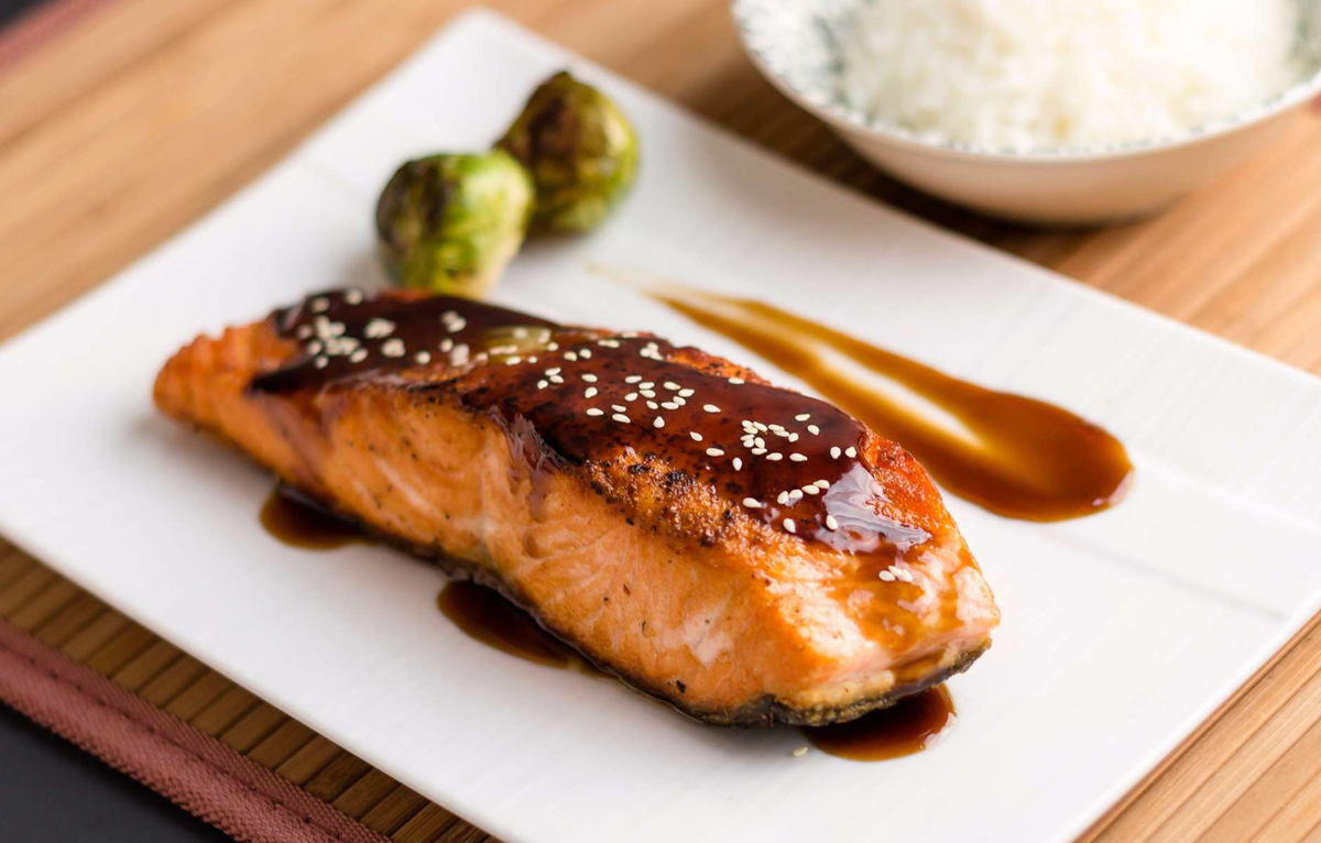 Это блюдо – ода азиатской кухне, где сладость соуса терияки идеально сочетается с нежностью лосося, а кунжутные семечки добавляют хрустящую текстуру и пикантный аромат. Это ужин, который поражает своей простотой исполнения и глубиной вкуса. Ингредиенты: Приготовление: 1. Разогрейте масло на сковороде. 2. Обжарьте филе лосося по 3-4 минуты с каждой стороны. 3. Залейте соусом терияки, обжаривайте еще 2-3 минуты, постоянно поливая соусом. 4. Посыпьте кунжутными семечками. 5. Подавайте, украсив зеленым луком.