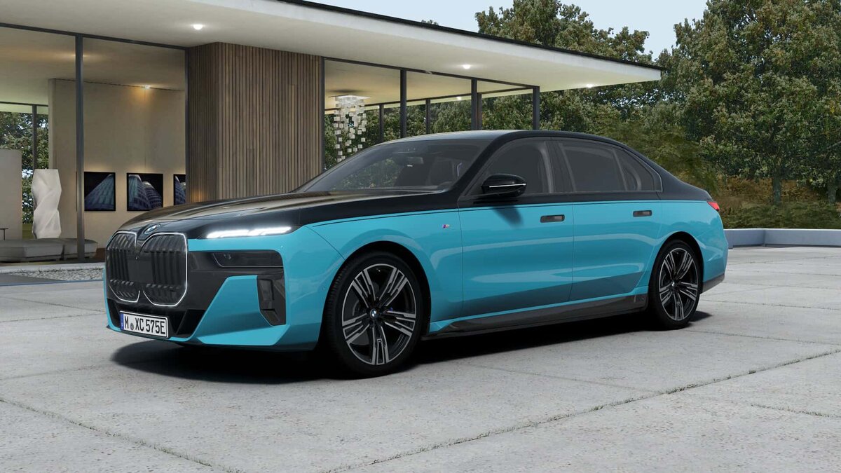 Если вы твёрдо верите, что только модели Rolls-Royce достойны двухцветной окраски, вам не понравится эта «Семёрка». Однако новый владелец полностью электрического седана класса люкс так не думает. Роскошная баржа с нулевым уровнем выбросов имеет поразительную отделку, представленную в индивидуальной окраске Borusan Turkish Blue (P9E) с Sapphire Black (475). Хотя это редкий и относительно новый цвет, мы уже видели Borusan Turkish Blue на других BMW. В ноябре 2024 года второе поколение 2 Series Gran Coupe щеголяло этим оттенком для топовой модели M235. Пару месяцев назад был M3 Touring с такой же привлекательной отделкой. Однако разница здесь в том, что 7 Series использует оттенок Individual только для нижней половины своего величественного кузова. Верхняя часть чёрная, как и тонкая линия между двумя секциями, напоминающая Rolls-Royce. Если вам интересно происхождение этой краски, Borusan Turkish Blue — фирменный цвет гоночных автомобилей M4 GT4 турецкой гоночной команды Borusan Otomotiv