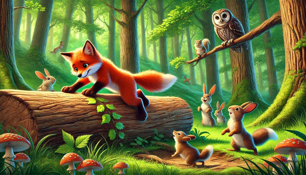 Возраст: 5–8 лет Лисёнок, который не сдавался В самом сердце волшебного леса жил маленький лисёнок по имени Лакки. Его рыжая шёрстка сияла на солнце, как золотые монетки, а глаза всегда светились озорным блеском. Больше всего на свете Лакки любил прыгать. Он перепрыгивал через пеньки, камни и даже небольшие кусты, чем очень гордился. Однажды утром, гуляя по лесу, Лакки увидел поваленное дерево. Оно было намного выше всех преград, через которые он прыгал раньше. "Это будет мой самый великий прыжок!" – подумал лисёнок и разбежался. Но... Бум! Лакки врезался в ствол дерева и упал на мягкий мох. В этот момент мимо проходили другие зверята – зайчата, бельчата и ежата. Они начали хихикать: