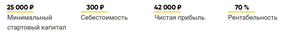 Маржа: 70% – 80%. - Ожидаемая прибыль: