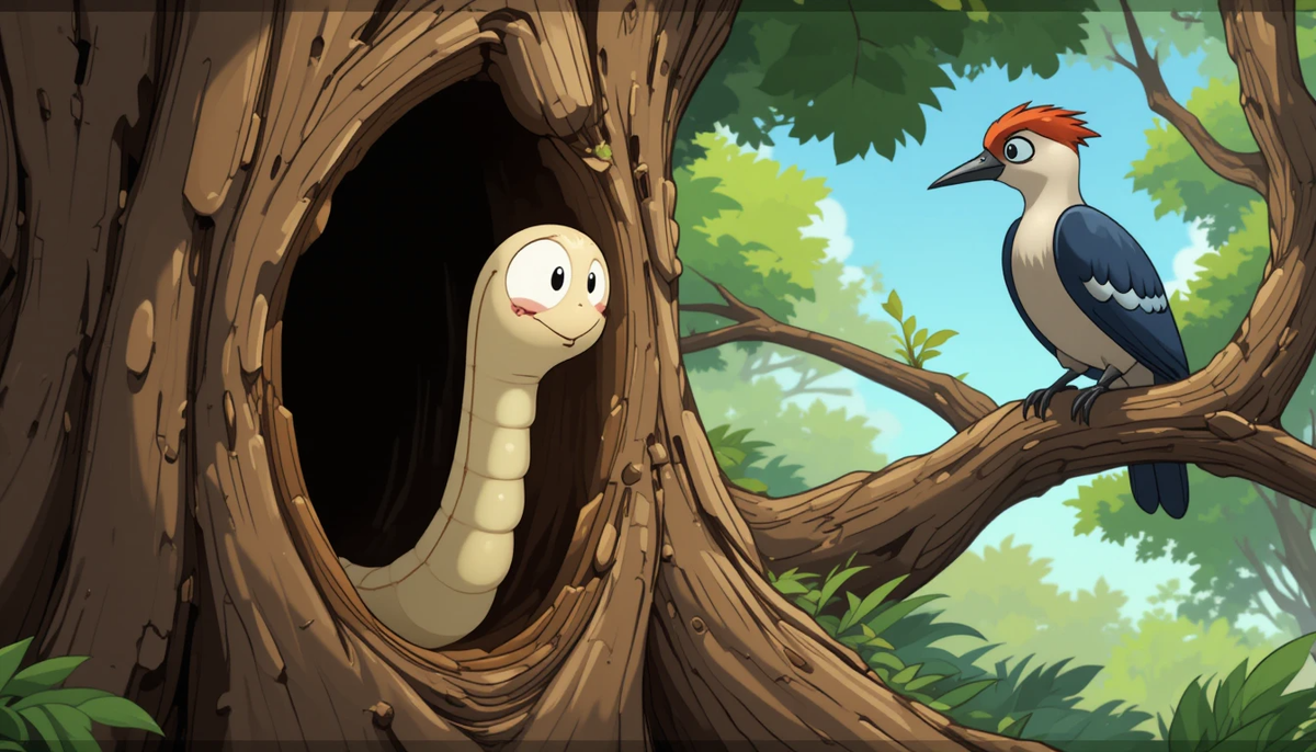 Дятел-гурман и червячок-переговорщик. Как червячок спас сам себя