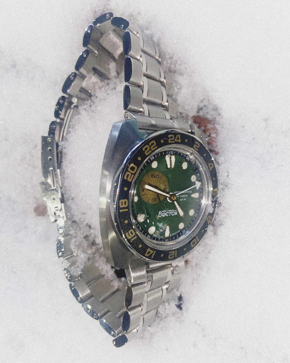 Ммммммм, какой приятный зелёный! Ещё рядом с оранжевым кругом секундной стрелки — красиво! Хорошо что эти часы купил, я стильный молодец, ну очень приятный зелёный, такой же кайфовый как на моём термосе: