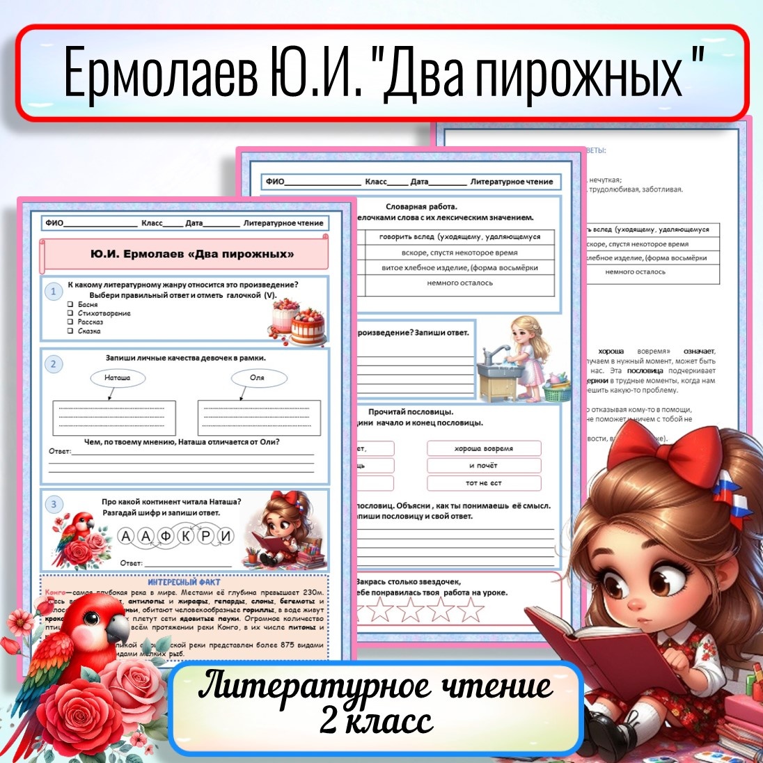 Рабочий лист Ермолаев Ю.И. "Два пирожных " 2 класс Литературное чтение с ответами для учителя