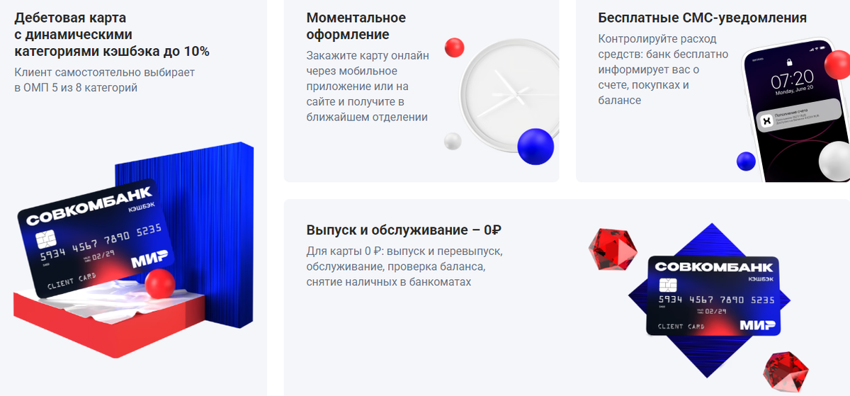 Кому подойдет эта дебетовая карта? Как оформить дебетовую карту Совкомбанка с кэшбэком? Оформить карту можно: Открытие, обслуживание — бесплатно Кешбэк: