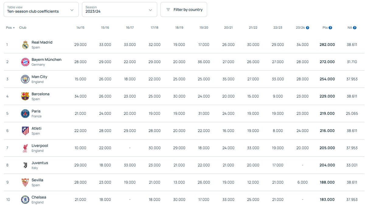 Ранее cash&goals уже писал о том, как УЕФА будет начислять призовые клубам в новом формате еврокубков. Ключевое: доходы условно можно разделить на 3 компонента: бонус за попадание в основной раунд (+успехи в квалификации для ЛЕ и ЛК), призовые за результаты в турнире и… Value Pillar. Суммы отличаются, но система начисления везде одинаковая;призовые за результаты начисляются за каждый матч (победу или ничью), за итоговое место в основном раунде, отдельно за 1-8 и 9-16 места (=50% от бонуса за 1-8 места), за выход в каждый раунд плей-офф (в т.ч. «knockout round play-offs» или 1/16 финала = 50% от бонуса за 1-8 места);призовые в компоненте Value Pillar по сути зависят от различных рейтингов клуба (поэтому в таблицах так и будет обозначен - пул рейтингов), до текущего сезона схожая статья называлась Marketing pool. Состоит из двух частей - европейской и неевропейской. Соотношение между доходов между ними 75% и 25% соответственно. В неевропейской части распределение доходов полностью зависи