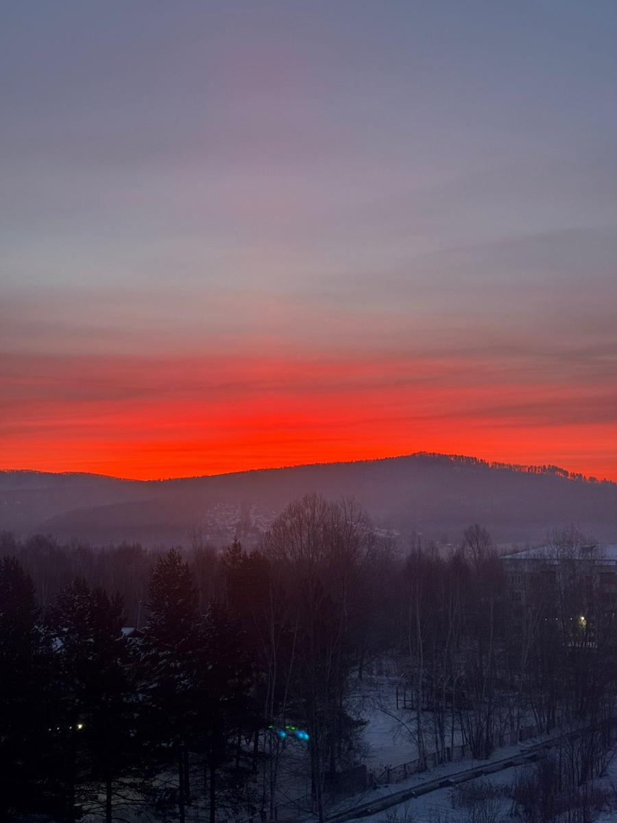 В первый рабочий день недели, точнее в первое утро, жителей нашего поселка порадовал и удивил рассвет Жаль, что фотография не в полной мере отразила цвет, потому что вживую это было еще более потрясающе! Сейчас, когда снег приобрел свой "истинный" зимний цвет и поселок до самого мая будет в серо-унылом цвете, этот безумно красивый, яркий рассвет заметили все. Для шахтерских городов это вполне обычное явление - черный снег... Но сегодняшний рассвет напомнил о моей подборке фотографий с рассветами и закатами. Душу рвёт восторг рассвета,