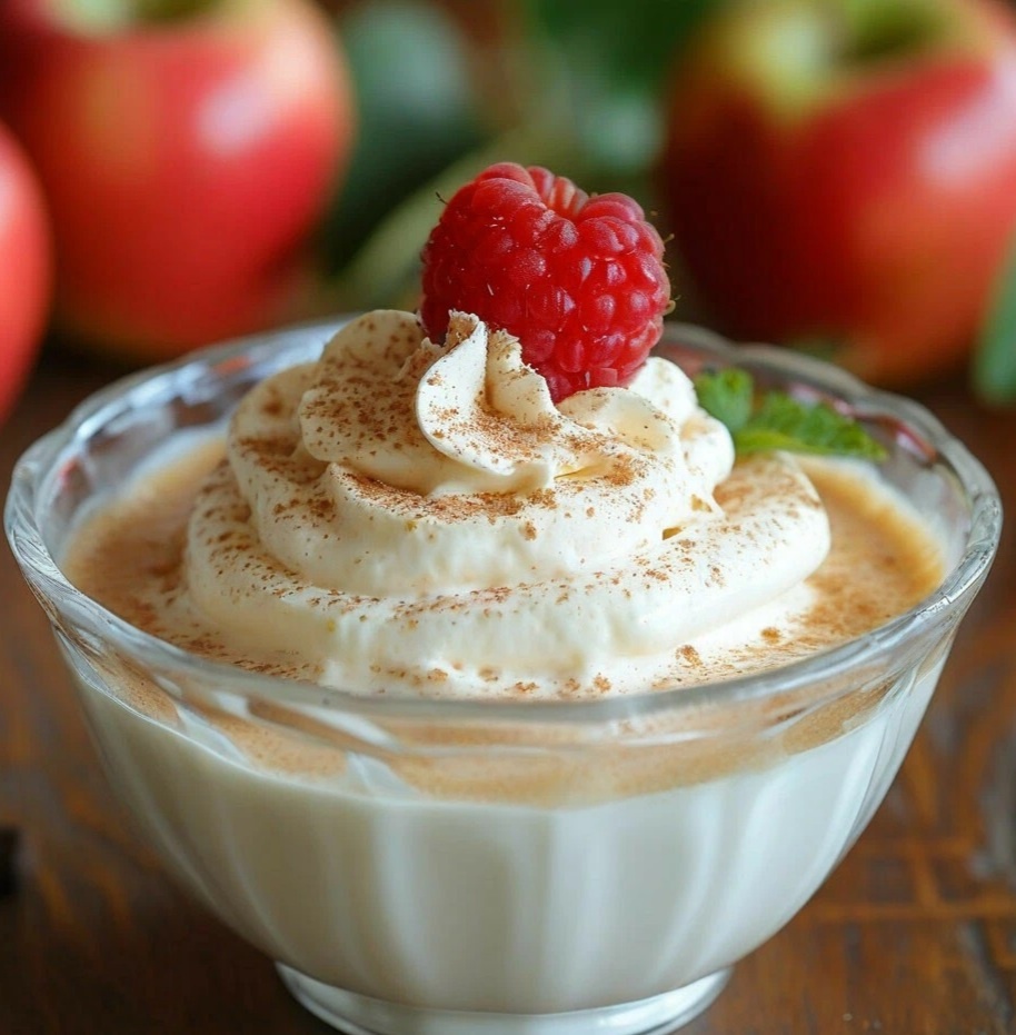 50г яблок, 80г воды, 25г сахара, 15г манной крупы. Яблоки вымыть (кожицу и завязь удалить), нарезать, залить водой и варить, пока яблоки почти полностью не разварятся. Затем протереть их сквозь сито, к полученной массе добавить сахар, манную крупу и, помешивая дать ей набухнуть. Готовую массу остудить до 30° C, влить в миску, взбить в крепкую пену. Подавать с молоком.