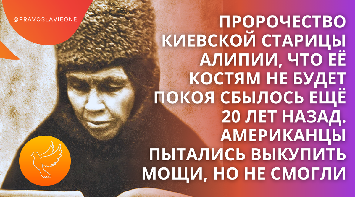 Перед кончиной киевская старица Алипия предрекла: «Костям моим покоя не дадут». Это пророчество, к сожалению, сбылось. И сбылось оно еще 20 лет назад.