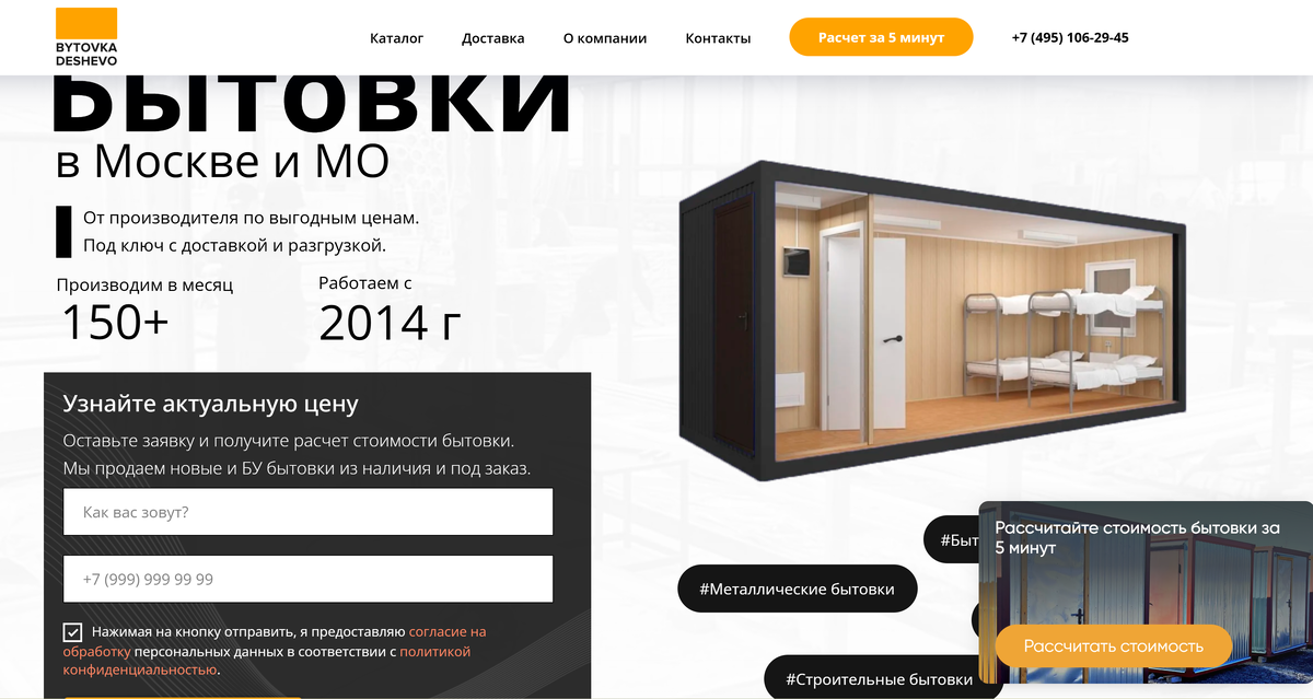 - На сайте размещены заманчивые предложения: бытовки и строительные конструкции по ценам, которые кажутся ниже рыночных.