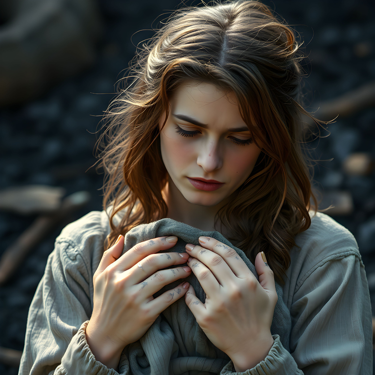 Тяжело дыша, я приподнялась, взяла ребенка на руки. Ножом, приготовленным заранее, я перерезала пуповину. Замотав младенца в одеяло, я прижала его к себе. Ребенок не плакал, но с ним было все в порядке: он внимательно изучал мое лицо своими черными глазками.