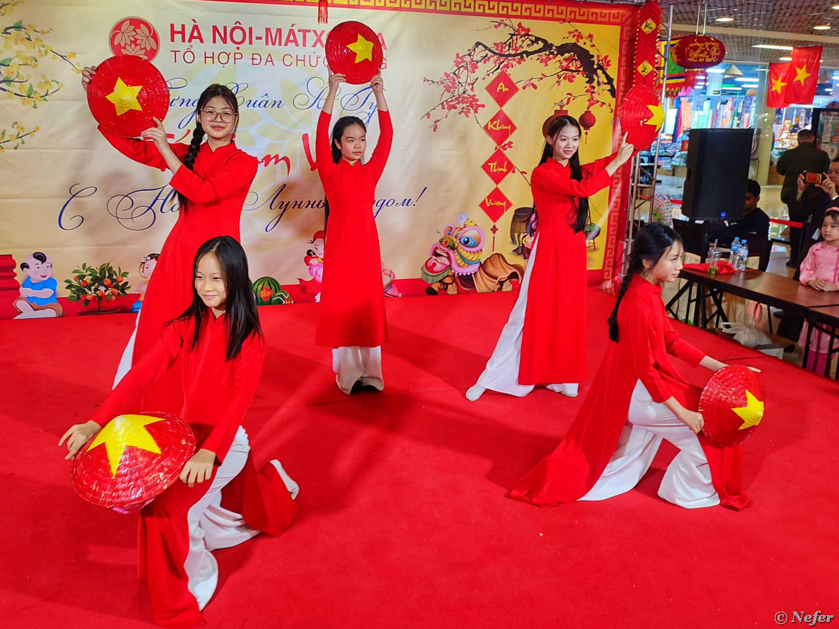 Вьетнамцы отмечают Новый год про лунному календарю. Дата почти всегда совпадает с китайским Новым годом, хотя бывают исключения. Вьетнамский Новый год называется Тэт Нгуен Дан, дословно Праздник первого утра. Но сокращенно говорят Тэт. В Москве праздник проводится в комплексе "Ханой-Москва". Танец льва, выступление школы вьетнамского боевого искусства, музыкальные номера и всякие викторины. Раньше праздники вел другой ведущий, в этот раз новый дядечка с зычным голосом. Я только пришла и догуляла до сцены, чтобы посмотреть, что там происходит. Сходу выиграла приз - мешочек конфет. Это была викторина "Я люблю Вьетнам". Вопросы несложные, но все-таки надо быть хоть немножко в теме. В мешочке оказались мини-конфетки "Забегай на чай" кондитерской фабрики "АтАг". Вкусные. Я таких раньше не пробовала. Спасибо, очень приятно :) Вопрос звучал так: одна из традиций праздника Тэт - танец льва. На каком еще празднике можно его увидеть? Конечно, на празднике середины осени, он же праздник Полной лу