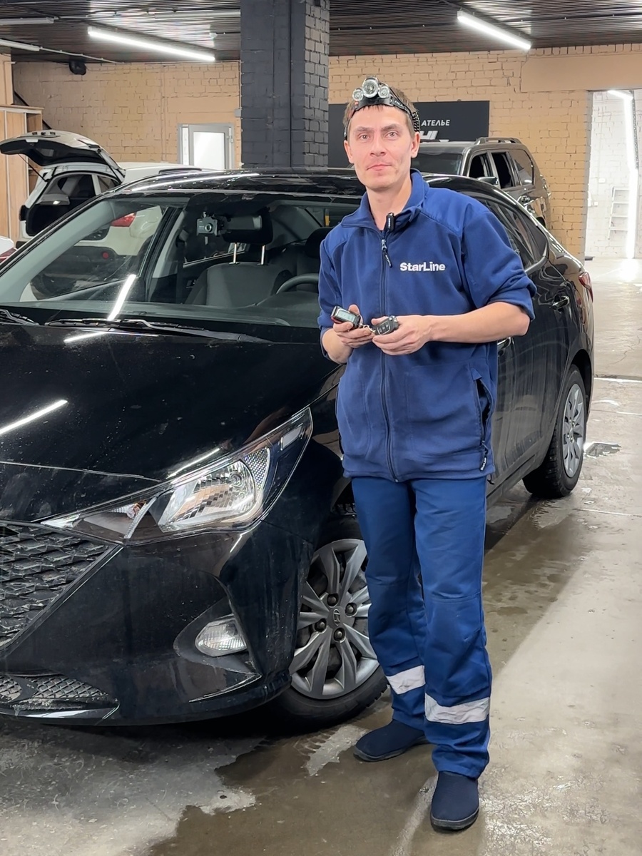 Владелец Hyundai Solaris решил пользоваться брелком, поэтому мы установили охранную систему 6-го поколения StarLine E96 которая оснащена брелком, который отображает всю необходимую информацию.