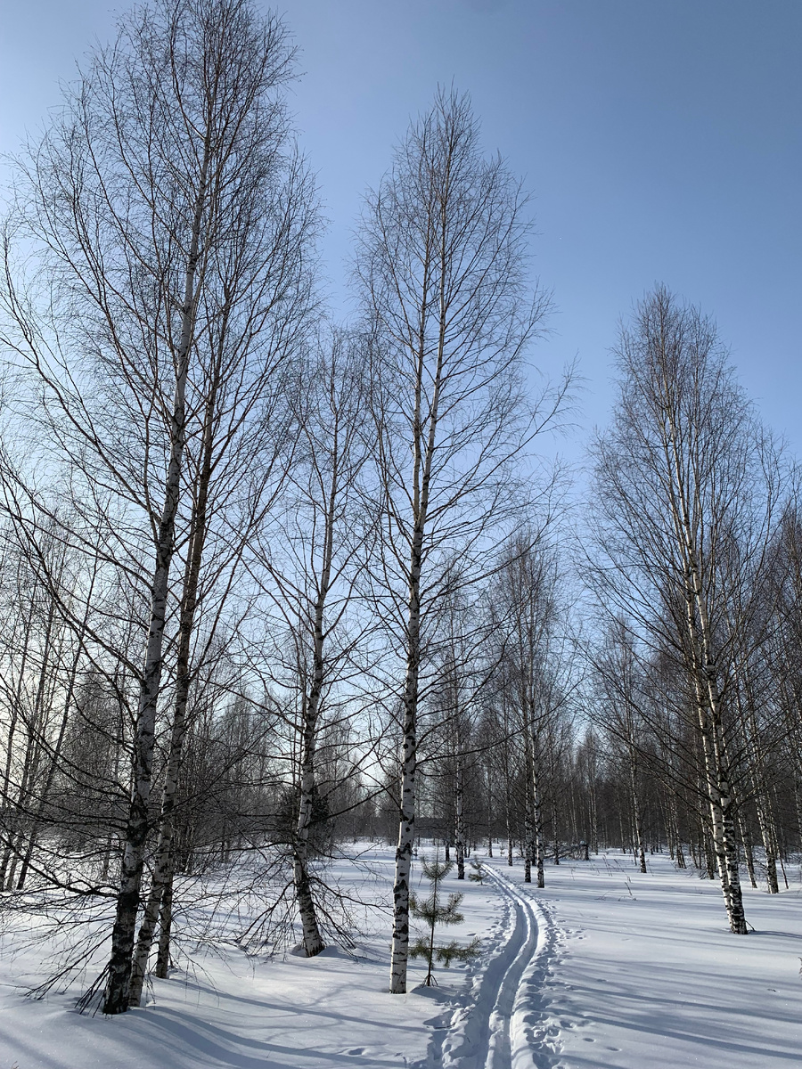 Вроде и знаю, что-то в плане природы, регулярно посещаю лес, уже могу определять ряд следов, но вот всё знать - невозможно, что и подтвердилось, когда был на лыжах и увидел интересные следы. Всё, как обычно: В итоге, решил пройтись чуть дальше, чем обычно хожу. Это для того, чтобы спокойно и видео поснимать, и просто записать подкасты. Если кто-то не знает, запись веду на рекордер, просто иду и разговариваю. И очень некомфортно себя чувствую, когда в процессе записи вдруг идут люди навстречу, лыжники и т.д., так как техника очень чувствительная и дальше вести запись уже невозможно: И вот, на одном из участков, рядом со сломленной березой, я увидел эти следы. Неспроста остановился, так как сразу и не понял, чьи они: вроде бы и лось топтался, но есть и намек на то, что след человека. Но если человека, то как-то тоже не особо похоже и непонятно, что он здесь делал. Загадка какая-то. Сделал несколько фоток, даже отстегнул лыжи, и попробовал сам рядом потоптаться, чтобы методом сравнения в