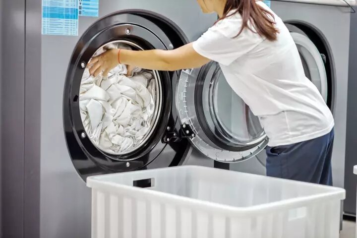 Перечень установок, которые обязательно должны быть в прачечной на производственном объекте, может меняться – в зависимости от вида деятельности, масштаба предприятия. Однако в цеху для обработки спецодежды не обойтись без стиральных машин, сушильных автоматов и гладильных катков. Рассмотрим каждый вид образования отдельно. Стиральные машины для предприятий отличаются высокой производительностью. В них можно загрузить большое количество одежды, что позволяет экономить электроэнергию, воду. Они надежны, не требуют постоянного техобслуживания, проверки настроек. Среднее время работы стиральной машины (промышленной модели) составляет 8-9 часов без перерыва. Выдерживает до 30 тысяч циклов без поломок внутренних элементов, неисправности автоматики.
