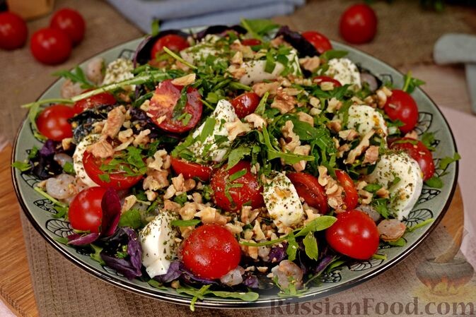 Салат с креветками, помидорами и моцареллой. Картофель с жареными грибами. Макароны с тыквой и творогом. Песочное печенье "Трюфели". Омлет с грибами и брынзой. Запеченный картофель с жареными грибами. Картофель нарезается тонкими ломтиками особым образом. При запекании он пропитывается сливочным маслом и душистыми травами, приобретает удивительный вкус и аромат. Жареные грибы с луком идеально дополняют картошку при подаче. Макароны с тыквой и творогом. Отварные макароны заиграют новыми вкусами и красками, если дополнить их кубиками варёной тыквы и жареным луком с пряностями. А творог заменит привычный сыр. Аппетитно и интересно! Песочное печенье "Трюфели". Песочное тесто замешивается на сливочном и растительном масле, без яиц. В половину теста добавляется кокосовая стружка. Два вида рассыпчатого печенья в форме конфет-трюфелей обваливаются в двух разных обсыпках: с какао-порошком и кокосовой стружкой. Получается ассорти – четыре вида печенья. Омлет с грибами, помидорами и брынзой. Люб