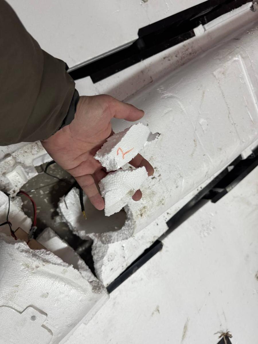 На просторах Интернета появились фотографии фрагментов отечественного беспилотника «Гербера», буквально «скроенного» посредством сборочных линий из недорогой фанеры и огромного количества классического белого пенопласта. Помимо такого дешевого фюзеляжа и наполнителя, новый российский дрон состоит из цифровой камеры и модема, необходимых для отправки оператору видеопотока, попутно вводя в заблуждение мобильные расчёты ПВО.