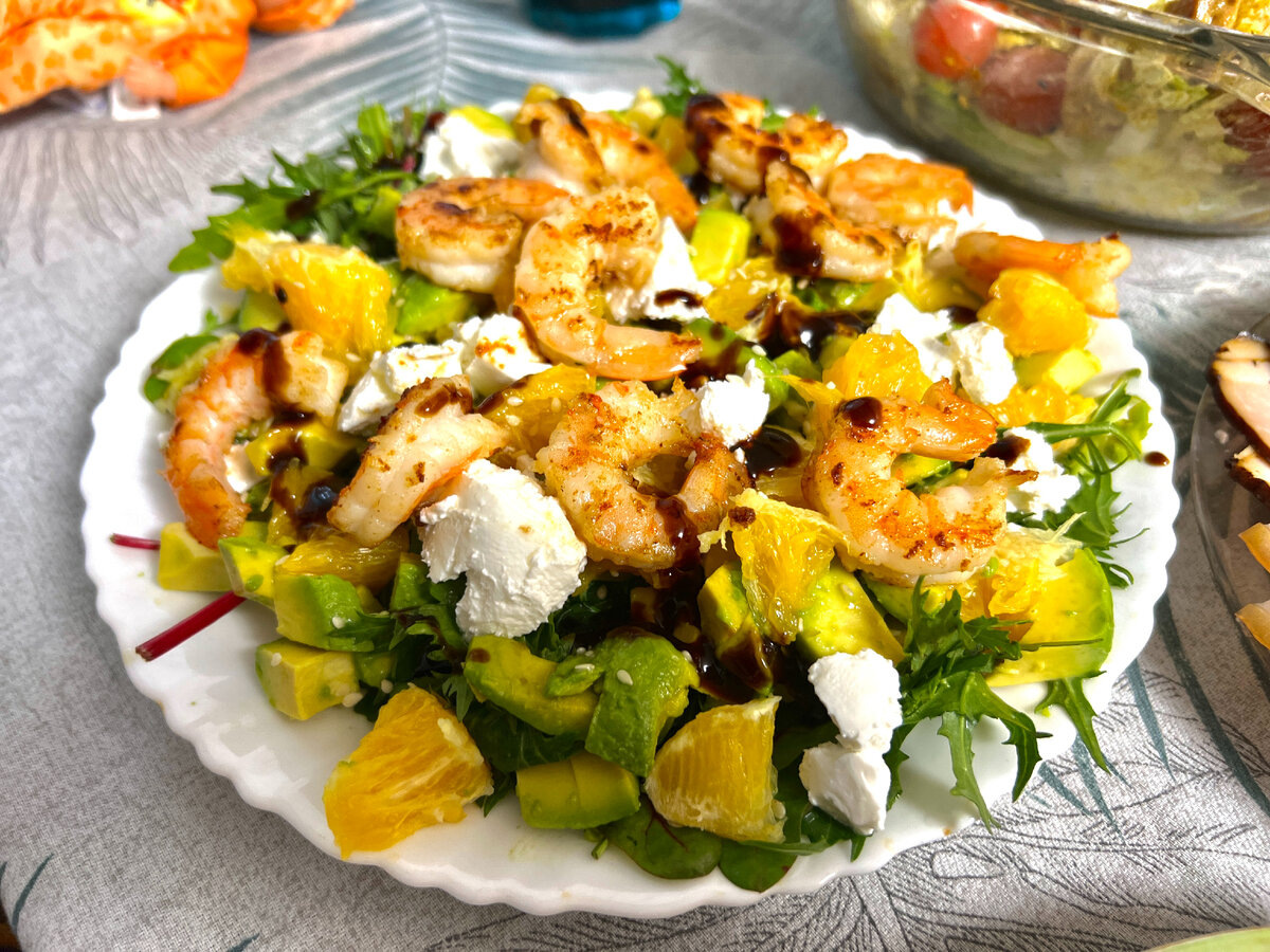 Недавно я попробовала этот салат, и он мгновенно покорил всех! Нежные креветки, сочный апельсин и остальные ингредиенты идеально дополняют друг друга, создавая гармоничный вкус. Легкий, свежий и изысканный – он станет отличным украшением как праздничного, так и повседневного стола. Уверена, этот салат никого не оставит равнодушным!