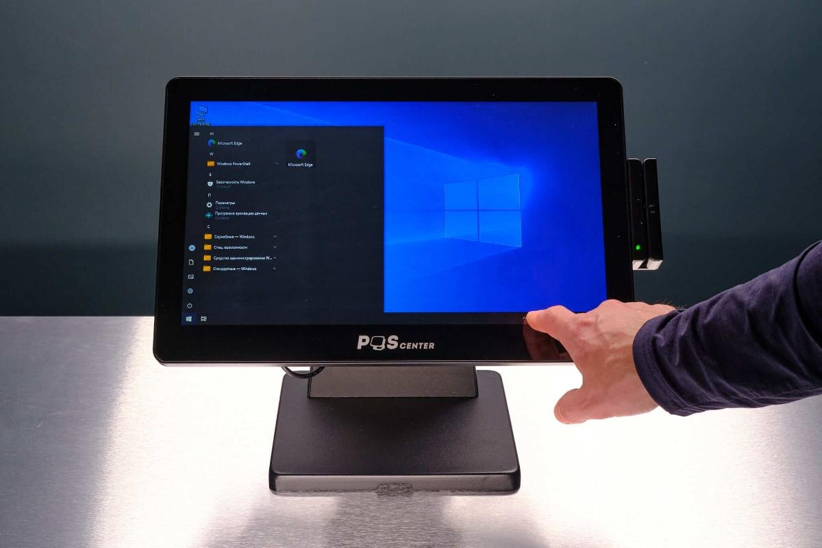 Присмотримся к сенсорному POS-моноблоку POScenter Atlas. В статье вас ждут фото модели, обзор характеристик и мнение ритейл-экспертов PORT. По традиции первое фото общим планом. Суть любого POS-терминала — сенсорный экран. У POScenter Atlas это плоский емкостной дисплей диагональю 15 дюймов и разрешением 1024×768 px. Достаточно крупный, чтобы было удобно работать с кассовой программой, но и вполне компактный, чтобы не занимать много места на стойке кассира или администратора. Изображение на мониторе яркое, хорошо видно при разных углах наклона. Совершенно плоский экран без канта удобен тем, что его можно спокойно протирать салфеткой: крошки, пылинки и капли воды не попадут внутрь. P-CAP технология — это точная и быстрая реакция даже при легком касании. Монитор реагирует на касания пальцем, в перчатках работать не получится. Заметим, что магазинах с одеждой, продуктами, косметикой и в сфере услуг кассиры традиционно работают без перчаток.
