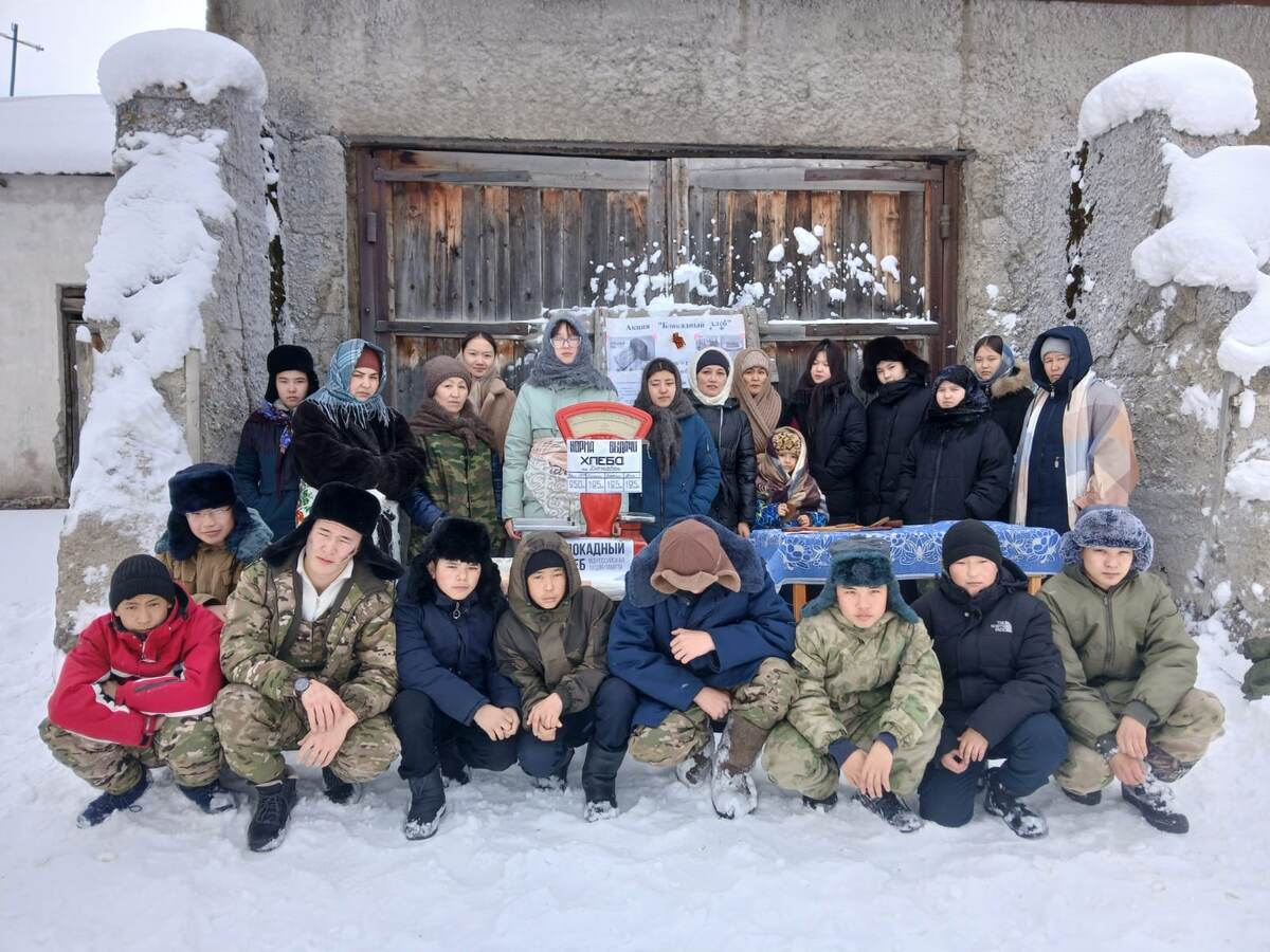 Шестнадцать тысяч матерей пайки получат на заре – сто двадцать пять блокадных грамм с огнем и кровью пополам. … О, мы познали в декабре – не зря «священным даром» назван обычный хлеб. И тяжкий грех – хотя бы крошку бросить наземь: таким людским страданьем он, такой большой любовью братской для нас отныне освящен, наш хлеб насущный, ленинградский. О. Ф. Берггольц В школах республики проходят акции памяти «Блокадный хлеб», посвященные годовщине снятия блокады Ленинграда, которая отмечается 27 января. Детям рассказывают о героизме и стойкости ленинградцев в годы Великой Отечественной войны. Накануне важной даты такие мероприятия состоялись и в Кош-Агачском районе, в том числе в Джазаторской школе. «Волонтеры Победы» вместе с руководителем Сымбат Зурганбаевой и при содействии библиотекаря Джазаторской сельской библиотеки Акжол Байбатыровой и специалиста по работе с молодежью Берикжана Джуманова рассказали учащимся и односельчанам о подвиге жителей Ленинграда и о том, как 81 год назад,
