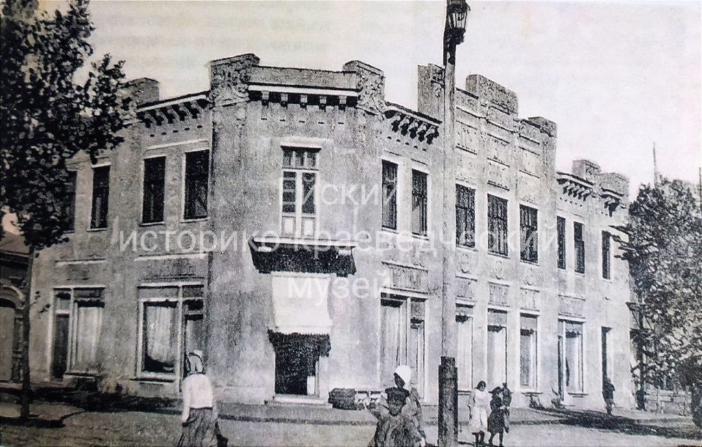 Шикарное здание, совмещающее в себе признаки ампира и модерна, находится под аркой санатория. Русско-Азиатский банк (до середины 1910 года он был Русско-Китайским) находился на втором этаже. На первом братья Георгий и Константин Аджемовы торговали мануфактурой и сельскохозяйственными орудиями, машинами. Со стороны ул.Таганрогской (сейчас ул.Свердлова) располагался биограф, так одно время называли кинотеатры.