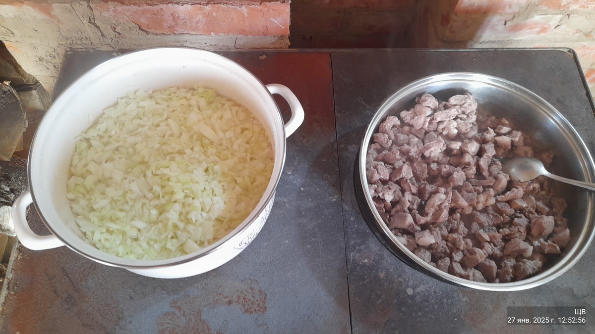 Съездили с Любаней сегодня в клуб. Там бабушка с ветеранами свечи окопные льют практически каждый день, а я давно никого не видела, вот, поехала. Народ посмотреть,себя показать. Пока с девчонками болтали о том, о сем, Любаня помогала со свечами. Картонки какие то подносила. Дыроколом дырки прокалывала. Я домой собралась, а она ни в какую и все- Можно я еще немного помогу? Потом с бабушкой домой приду. Оставила ее там. Домашнее задание все равно не задают на понедельник,можно себе позволить и поработать))) Всем здравствовать долго и счастливо!!! Домой приехала, стала солянку готовить. Она же тушеная капуста. Она же бигус))) Тут я поди уже рассказывала. В каждом регионе по разному называется тушеная капуста. Для меня она 35 лет была солянкой. Мяса был кусок большой, я немного оставила на завтра, остальное все порезала и в сковороду. Мне надо немного обжарить. А потом я в кастрюлю с капустой высыплю, там и доварится. Саму капусту я решила сегодня в кастрюле тушить. И чего я так раньше