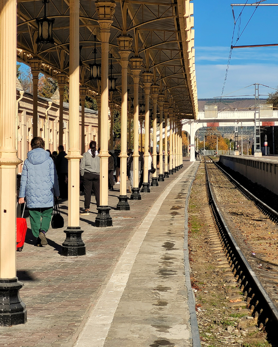 Идея поехать в конце октября и начале ноября в Кисловодск оказалась очень удачной. Поздней осенью уже везде мрачно. А тут было солнечно, ярко, тепло, и мы с сыном получали большое удовольствие от всего вокруг. Сегодня хочу поделиться такими моментами. Всякое полезное ещё обязательно успеется. ...мы вывалились из поезда утром на залитый солнцем перрон и пошли между тенями от чугунных красавцев-столбов. Вещи — в камеру хранения. И сразу искать Чебурашек. Ну а как иначе, если Федя — преданный поклонник фильма. Ждать-то невозможно. И вот они — первый, второй, третий... ...Карла Маркса, Курортном проспекте и улице Реброва. Потом регулярно приходили навещать. И по столовым, столовым! Вот тут хотелось есть именно в столовых. Какие-то они на курорте очень правильные, ностальгические и заманчивые. Нам особенно хорошо было на Герцена, 3А. ...из «Снежинки». Взять, сесть за столик, жевать, болтать и никуда не спешить. А потом рассматривать декоративную капусту на газонах, по дороге спонтанно купит