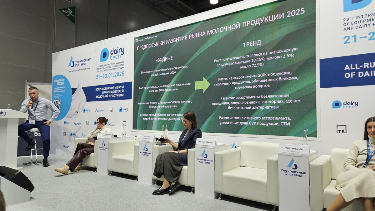 Таким мнением, а также видением основных трендов развития молочной полки поделился Глеб Тимганов, руководитель управления категории «Молочная продукция» ТС «Перекрёсток», выступая в рамках деловой программы выставки Dairy Tech 2025. Фото: Агеенкова А./Retail.ru Повышение стоимости молочного жира в 2024 году — важный фактор, который влияет сегодня на развитие молочного рынка. По мнению эксперта, это приведет к тому, что покупательский спрос будет перераспределяться на продукты с меньшей жирностью: «Например, в сметане покупатели будут переключаться с 20–25%-ной на 10–15%-ную. Во второй половине 2024 года мы уже увидели, что на рынке стало меньше 25%-ной сметаны. Этот тренд заметен и в других категориях». Глеб Тимганов отметил, что ощущается рост интереса аудитории к продуктам для правильного питания и ЗОЖ, и, отвечая на эту потребность, ритейлеры будут стремиться развивать ассортимент ЗОЖ-продукции, молочных продуктов, обогащенных белком, и греческих йогуртов. В 2024 году доля высокобел