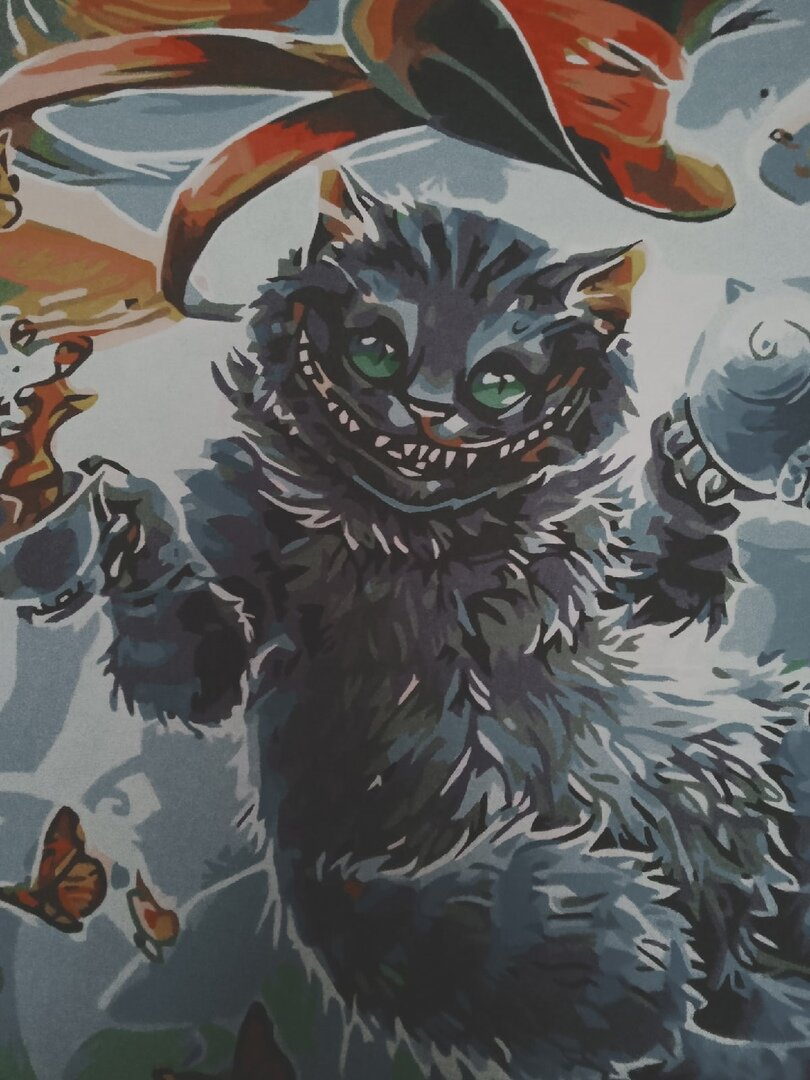Уже несколько лет мою стену наряду с Алисой и Шляпником украшает изображение Чеширского кота. Яркая и сочная картина, наполненная кучей мелких деталей. И очень часто гости завороженно смотрят на нее, как бы намекая на подарок :) Но поскольку с картиной связано множество воспоминаний, мне было проще нарисовать новую. Мне удалось найти нечто похожее у Hobruk, но меньше по стоимости и размеру. Сегодня посмотрим, стоит ли переплачивать. Погнали! Первое, что бросается в глаза - отличия по цветам. Картина от Do you paint была намного сочнее, здесь же преобладают контрастные тени. Да, уже после написания статьи осознала, что не привела ценники. Так как обе картины сейчас недоступны, условно обозначу Do You Paint за 1200-1300, а Hobruk 600-700, т.е. разница почти х2. Холст у Hobruk-а пришел изрядно пожеванный жизнью, что немного печалит. Все же, их привычка экономить на упаковке, иногда выходит боком. Напомню, что у них матовые краски - хотя конечно же, по виду так и не скажешь. Кисти абсол