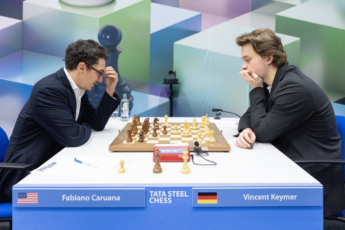 В главном турнире – без изменений. Якуббоеву пришлось объясняться. Masters Долгое время казалось, что все партии в главном турнире закончатся вничью, но Каруана и Вэй в итоге одержали победы. Впрочем, это не поменяло состав лидеров – Абдусатторов, Праггнанандха и Гукеш по-прежнему впереди. Кеймер – Каруана (0-1) В разменном варианте ферзевого гамбита Винсент решил все дебютные проблемы, но начал играть пассивно. В эндшпиле Фаби продемонстрировал превосходство двух слонов над слоном и конем, выиграл качество и довел проходную до второй горизонтали, заставив соперника сдаться. Кеймер (белыми) – Каруана (черными) Фото: tatasteelchess/Jurriaan Hoefsmit Победа возвращает Каруану в +1, и оставляет его в борьбе за первое место. На +1 вышел и Вэй И, в затяжной партии одолевший черными Вармерама. В шотландской партии Макс сильно пожертвовал качество за пешку и пару слонов. Однако, поторопился разменять слона на коня и китаец сумел активизировать свои фигуры (в первую очередь – ладью a8), на 50-