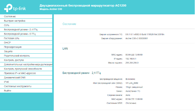 Далее перейдите в раздел «Состояние» и проверьте состояние WDS в разделе Беспроводной режим 2,4 Ггц. Если у WDS указан статус «Включено», то мост успешно настроен.