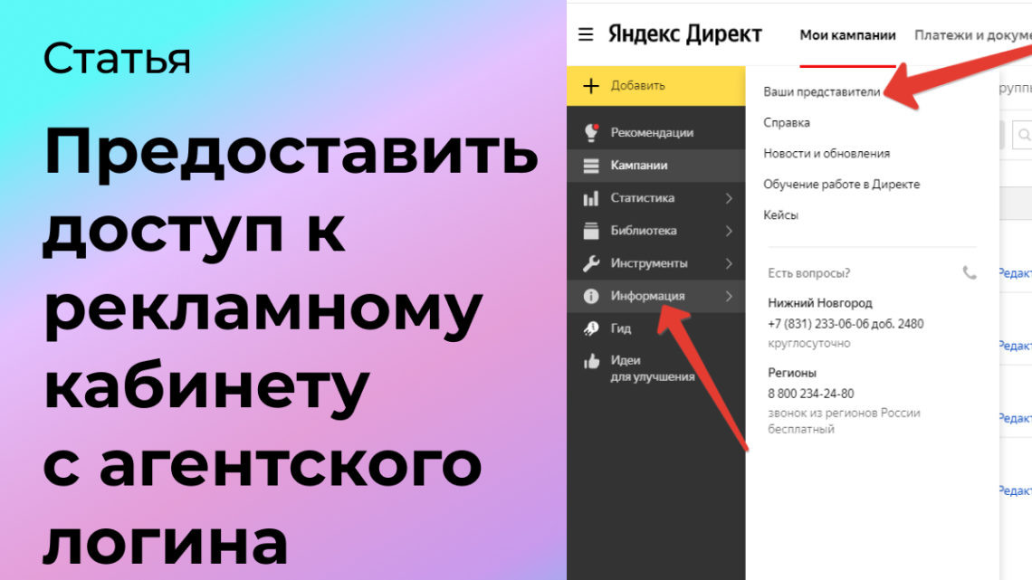 Как дать доступ к рекламному кабинету Яндекс Директ