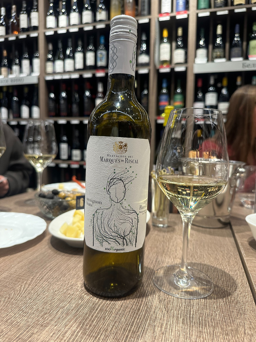 В продолжении знакомства с Совиньон блан, перемещаемся в Испанию. В качестве представителя рассмотрим Marques de Riscal Sauvignon Organic, 2023. Вино выпущено на винодельне, чьи корни уходят 19 век. Хозяйство основано маркизом де Рискаль Д. Гильермо Уртадо де Амесага в 1858 году. Маркес де Рискаль разлил свои первые вина в 1862 году, всего через пять лет были получены первые награды. Это старейшее бутилированное вино Риохи. Marqués de Riscal — первое нефранцузское вино, получившее Почетный диплом на выставке в Бордо в 1895 году. Этот диплом добавляется к этикетке вина. В 1972 году маркиз де Рискаль начал производство первых белых вин из Руэды. В 1974 году он представил в этом районе французский сорт Совиньон Блан. В 1980 году это была одна из виноделен, продвигавшая DO Rueda. С 2018 года все виноградники, принадлежащие маркизу де Рискалю в Руэде, проходят органическую сертификацию. 2023 Маркес де Рискаль третий год подряд считается вторым лучшим виноградником и винодельней в мире. Дос
