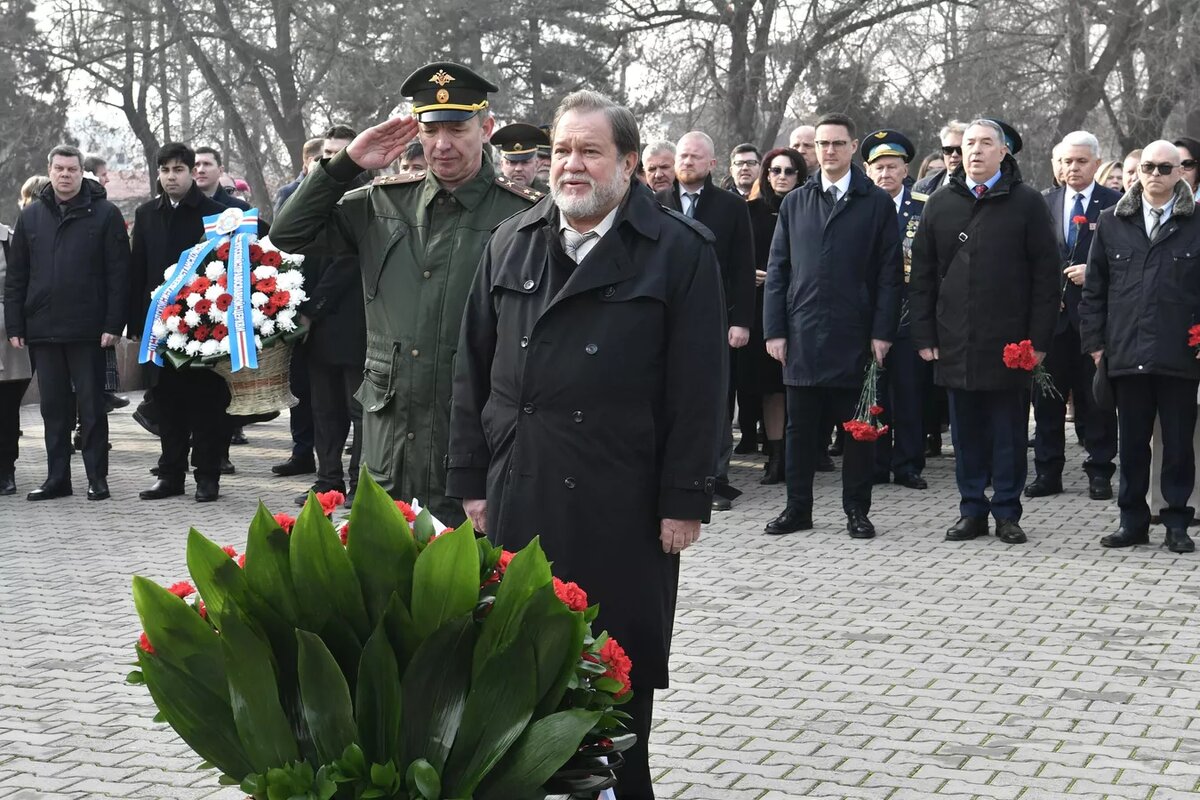 Участники возложили цветы и венки к Вечному огню и гранитной стеле Ленинграда.