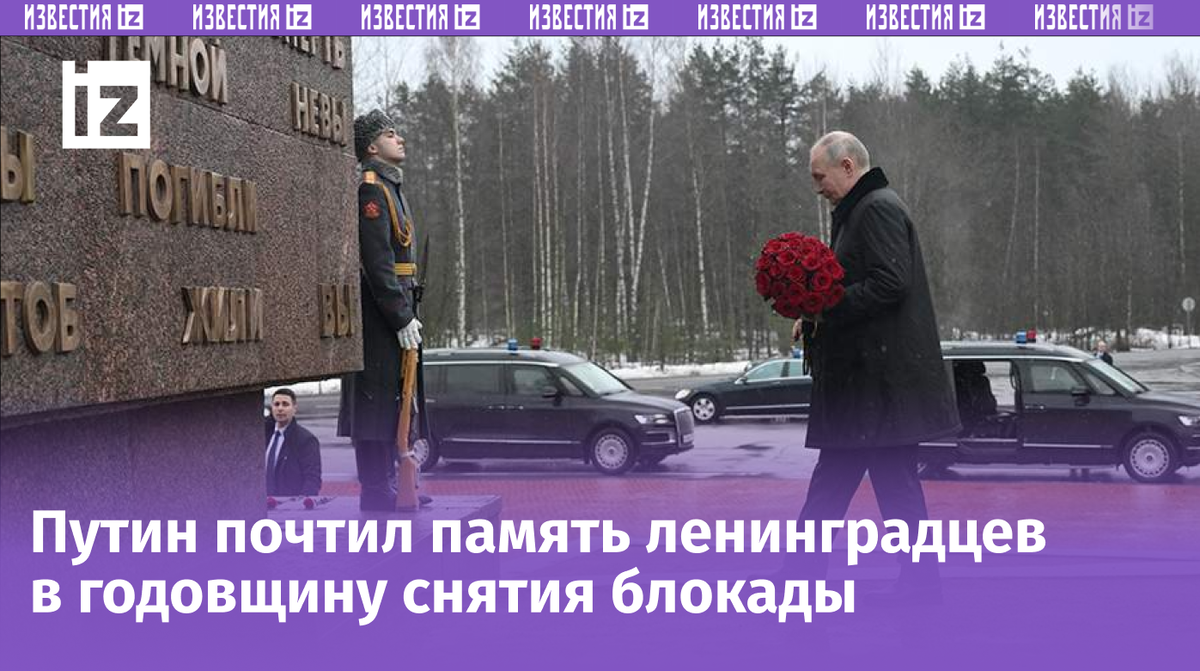 Президент России Владимир Путин в понедельник участвует в памятных мероприятиях, посвященных 81-годовщине освобождения Ленинграда от блокады со стороны войск нацистской Германии. Об этом сообщили в Кремле. «По традиции президент возложил цветы к памятнику «Рубежный камень» на военно-историческом комплексе «Невский пятачок», — говорится в сообщении в Telegram-канале Кремля. Именно на этом участке фронта протяженностью около трех километров с южной стороны Ленинграда военные Красной армии с первых дней блокады не подпускали к городу нацистов и их союзников. Важно, что вражеские силы численно превосходили советские. Ранее в этот день спикер Совета Федерации Валентина Матвиенко вместе с петербуржцами поучаствовала в возложении венков на Пискаревском кладбище и выразила признательность и балгодарность защитникам Ленинграда и блокадникам. Кроме Матвиенко, возложение посетили губернатор Санкт-Петербурга Александр Беглов и депутат Госдумы Николай Валуев. Осада Ленинграда началась 8 сентября 19