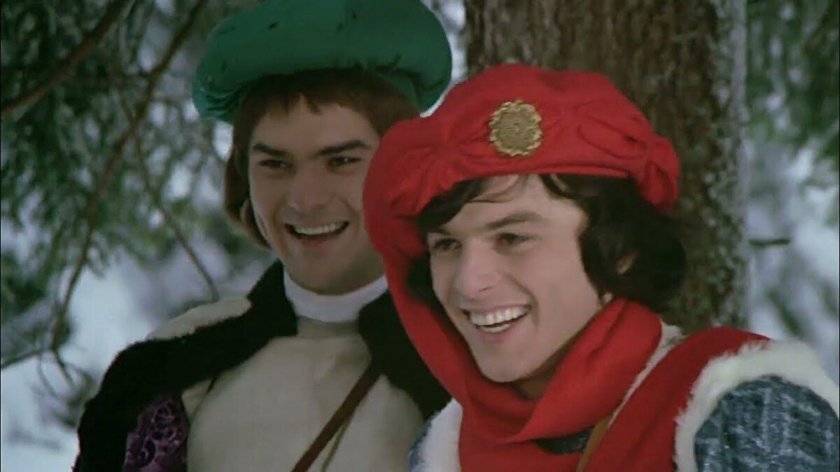 Думаю, что многие из вас, кто смотрел фильм "Три орешка для Золушки", обратили внимание на роскошные головные уборы мужских персонажей этой сказки. Они, с одной стороны фэнтезийны, очень разнообразны и красивы, а с другой стороны, в них чувствуется некая правда жизни. И это ощущение не обман - действительно, такие шапки существовали. Художники по костюмам под руководством Теодора Птишека и Гюнтера Шмидта создавали одежду для персонажей сказки, опираясь на старинные картины времён Ренессанса. Например, вот этот тюрбан у Принца. Отличительная черта этого тюрбана - наличие длинного шарфа, который представляет собой одно целое с собственно шапкой. Такой головной убор называется шаперон, он существовал в реальности. Эти "хвосты" называются шлыками. Судя по тому, что мы видим в фильме, у жителей сказочного королевства шапероны пользовались большой популярностью, ибо в кадр то и дело попадают мужчины в таких головных уборах. Например, распорядитель бала в кокетливом зелёно-блёстковом шаперон