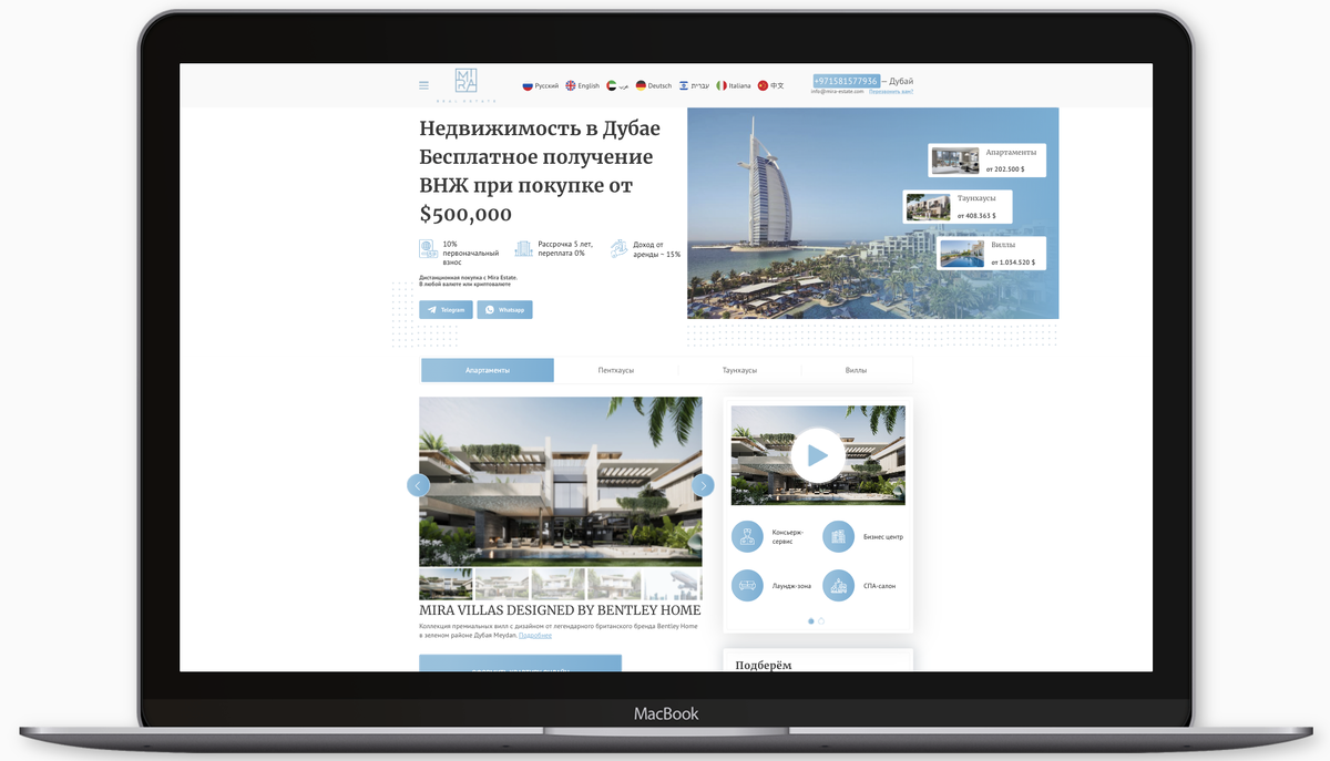 Рады представить вам наш проект в постоянной рубрике «Кейсы компании»! Сегодня расскажем об одной интересной работе команды Free Line Studio Представляем проект, в котором нам удалось воплотить высокие стандарты престижной компании Mira Estate — признанного эксперта на рынке недвижимости Дубая. Mira Estate — это компания с хорошей репутацией, которая с 2014 года предоставляет полный спектр услуг в сфере недвижимости ОАЭ. В их арсенале: операции с жилой и коммерческой недвижимостью, профессиональное управление объектами, содействие в получении ипотечного кредитования, а также комплексные услуги по ремонту. В ходе работы над проектом мы создали современную цифровую платформу, которая отражает премиальный статус бренда и обеспечивает комфортный пользовательский опыт. Благодаря интуитивной навигации и продуманной системе фильтров, клиенты легко находят подходящие объекты недвижимости. На сайте представлена исчерпывающая информация об услугах компании, инвестиционных возможностях и эксклюзи