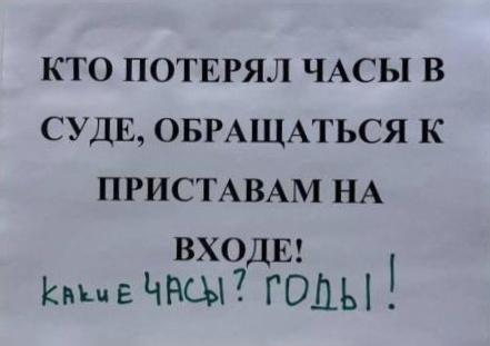 Я радостно оттащила их к приставам, и теперь вот с ужасом жду, что они опять их потеряют. В общей сложности, с учётом получения справок о потере листов у приставов, на получение дубликатов у меня ушел один год и две недели. В суде после заседания мне пришлось раз пятнадцать сгонять на прием к помощнику судьи и пять раз - к председателю суда.
