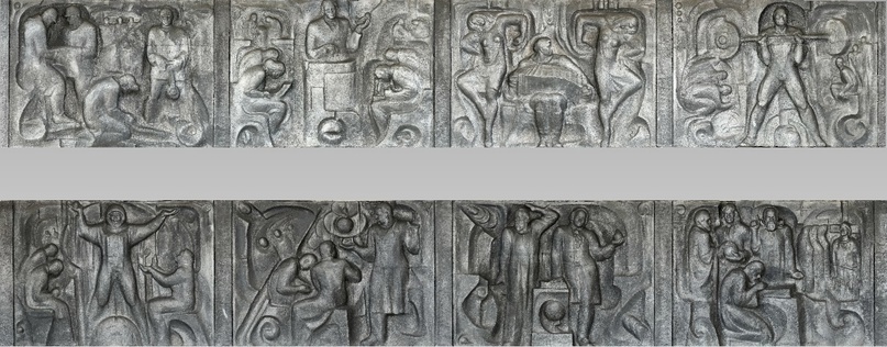 Одноэтажная пристройка главного корпуса ОмГТУ привлекает внимание своим панно на фасаде. Эта художественная композиция была создана в середине 80-х годов прошлого века. Первоначально она удачно вписывалась и дополняла фасад здания, выполненного в стиле советского модернизма. Впоследствии фасад здания был видоизменен навесной системой, и композиционная целостность была нарушена. На панно изображены разнообразные сцены: научные открытия и их тернистый путь, моменты, когда наука и техника достигают своего апогея, спортивные и культурные достижения, исторические события, трудовые подвиги народа. 👉 3D модель барельефа размещена на платформе Sketchfab и находится в свободном доступе по ссылке: