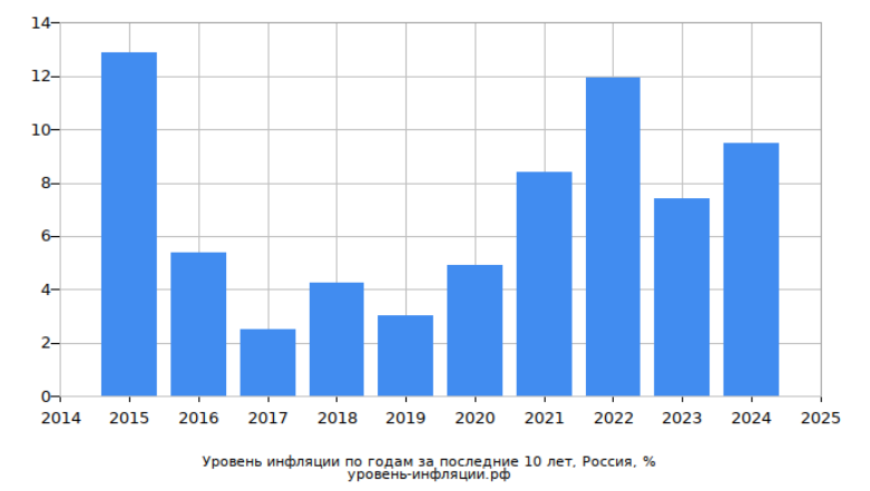 Уже пять лет подряд, как она превышает целевой показатель Банка России в 4%: