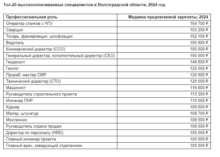 В Волгоградской области составили топ-20 самых высокооплачиваемых вакансий 2024 года.