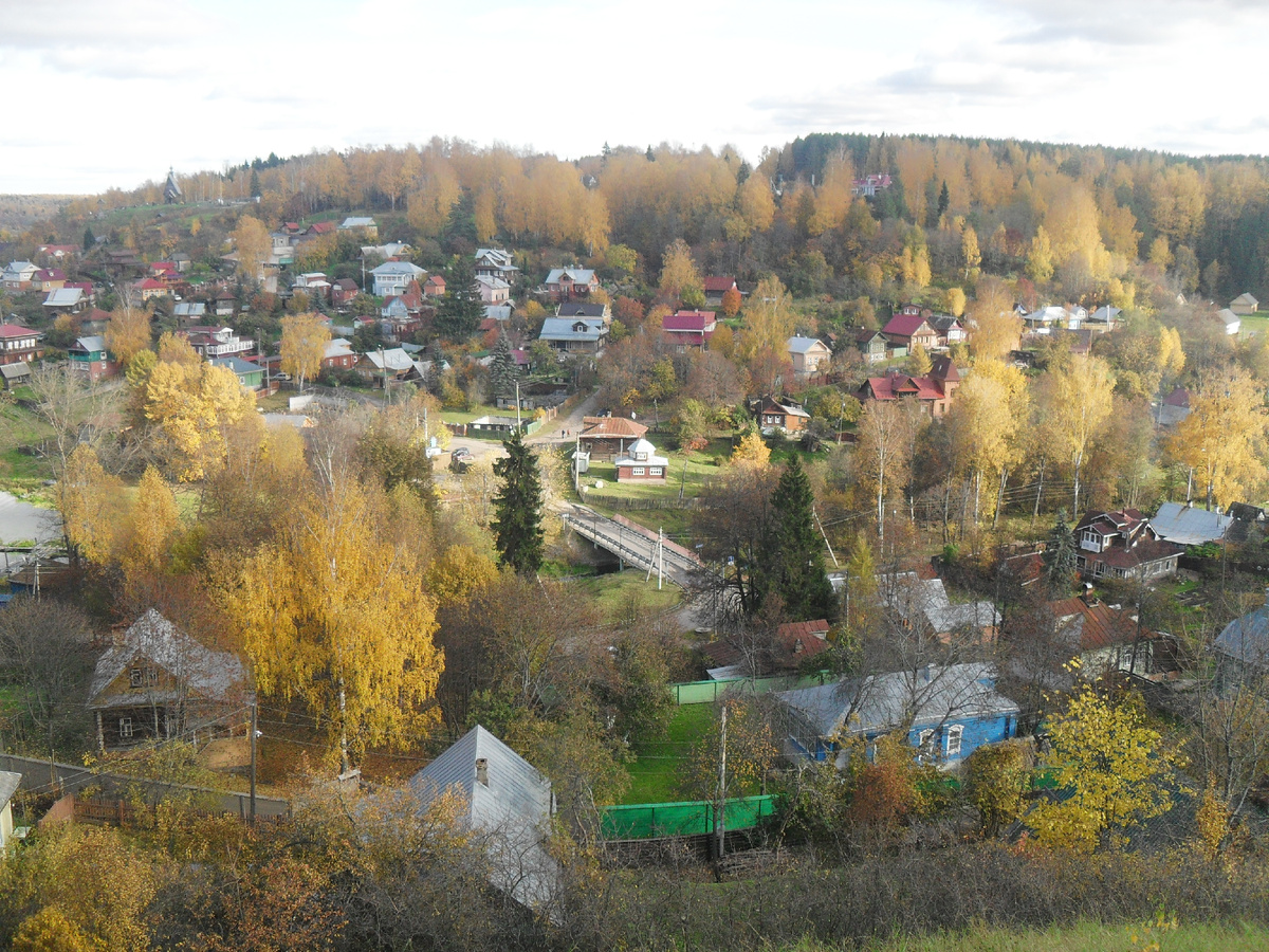 Но ехали мы в Плёс, конечно, ради красивых видов. Природа тут живописная. Волгой нас не удивить — сами на ней живём. Но в Ярославле берега плоские, а вот в Плёсе — совсем другой вид. Жена всё пыталась красиво на этом фоне сфотографироваться, но постоянно кто-то влезал в кадр — туристов здесь осенью ну просто толпы. Мы ещё порадовались, что при нашем гостевом доме есть парковка — ближе к центру всё было занято, только к вечеру стало заметно свободнее. Видимо, однодневных туристов тут всё же больше.