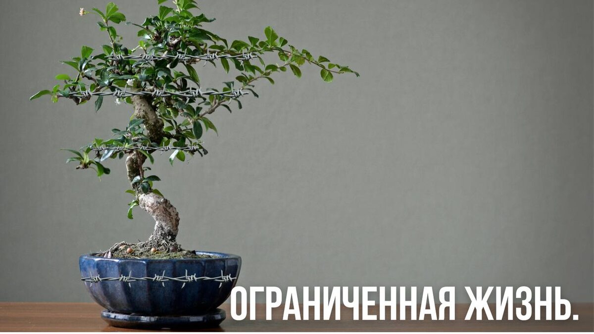 Бонсай — искусство выращивания точной копии настоящего дерева в миниатюре. Это очень красивые настоящие деревья - сосны, ели, вишни и т.д., они делятся на одну руку, две руки, три руки, четыре руки, в зависимости от того сколько нужно рук, чтобы поднять бонсай. Бонсай выращивается из семян или ростков обычных деревьев взятых в природе и если бы они остались в природе, то из них выросли бы полноценные деревья. Но, этого не произошло: их стали выращивать в ограниченных горшках на одну, две, три, четыре руки. И в зависимости от этого ограничения, объема земли в которой они вынуждены расти, бонсаи вырастают до определённого небольшого размера. Фиксируя проволокой ствол и ветки в нужном направлении, бонсаю задаётся его будущий вид, в который он и вырастает. Это очень красиво когда в небольшом горшочке мы наблюдаем панораму природы: могучее дерево на скале - это большое искусство, но это могучее дерево в горшке на одну руку не реализовало и тысячную того потенциала который был в нем. Но, ес