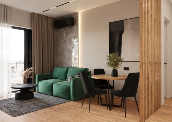 Авторская позиция дизайнеров «Геометриум» базируется на трех концептуальных идеях: экологичность, функциональность и объединение пространства в единое целое.