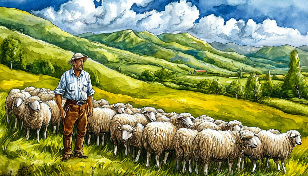 В одном живописном селе, утопающем в зелени, жил добрый пастух по имени Андрей. Он был известен среди местных жителей своей заботой о стаде овец, которые были для него не просто животными, а настоящими друзьями. Каждый день он выводил их на обширные пастбища, где овцы свободно гуляли, наслаждаясь свежей травой и теплым солнцем. Однажды, когда Андрей собирал овец, он заметил, что одна из них пропала. Это была его любимая овца по имени Милка, отличавшаяся своим светлым шерстью и игривым характером. Пастух почувствовал, как его сердце сжалось от тревоги. Он знал, что у него осталось много других овец, но Милка была особенной. Не раздумывая, Андрей решил, что не может оставить её одной. Он собрал все овцы и оставил их на пастбище, а сам отправился на поиски Милки. Он искал её в лесу, где деревья густо росли, и среди холмов, где ветер шептал свои тайны. Каждый раз, когда он звонил в свой колокольчик, его голос эхом раздавался по округе, но в ответ слышалось лишь молчание. Прошло несколько ч